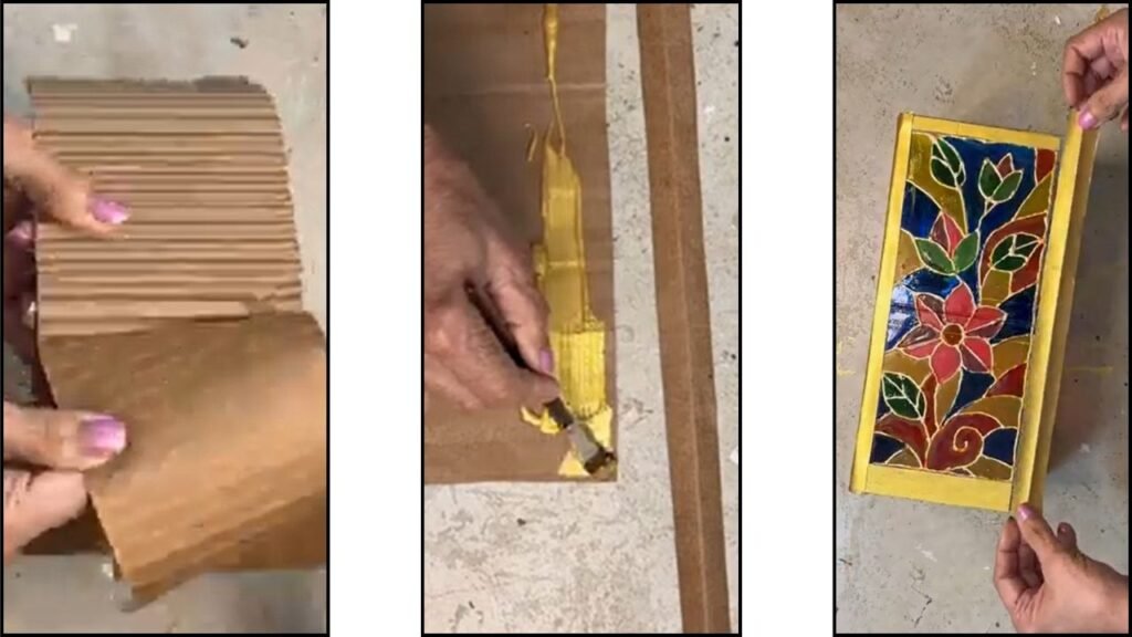 9. First, I separated the paper layer from the corrugated part of the cardboard.