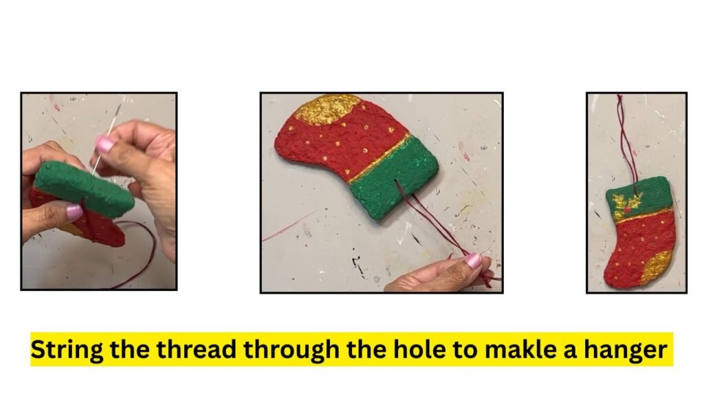 With the holiday season approaching, I cut out simple ornament shapes from cardboard as a sturdy base. Then, I rolled the clay flat with a rolling pin and carefully stuck it onto the cutouts. By shaping it this way, I was able to give the ornaments a hand-sculpted look. That’s how these beautiful handmade Christmas ornaments came to life.