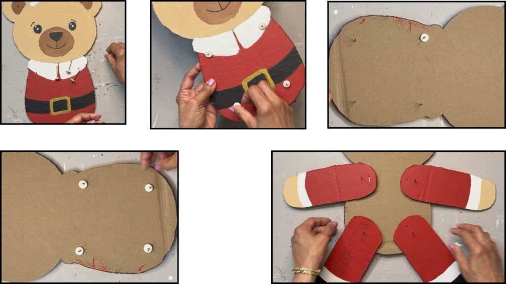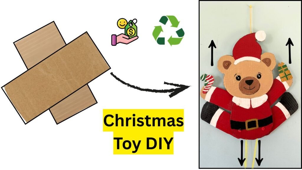 Turn simple cardboard into this adorable, wall-mountable Jumping Jack Christmas Teddy Bear! This budget-friendly and eco-conscious DIY toy is perfect for kids, grandkids, or anyone who loves handmade holiday crafts. Pull the strings to make the teddy’s arms and legs move it’s cute, interactive, and makes a wonderful handmade Christmas gift or festive decoration.