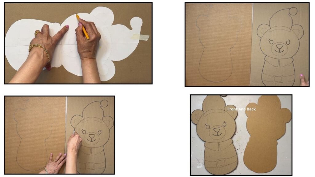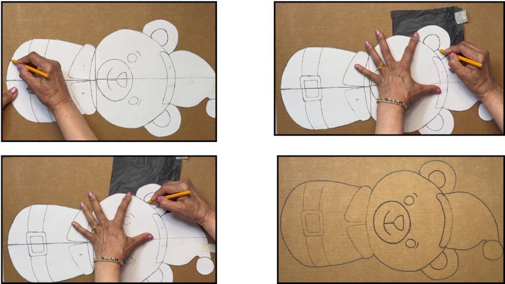 2. Place this template on a sheet of cardboard and draw around the shape. Used carbon paper to trace parts in the middle of body like ears, eyes, mouth etc.