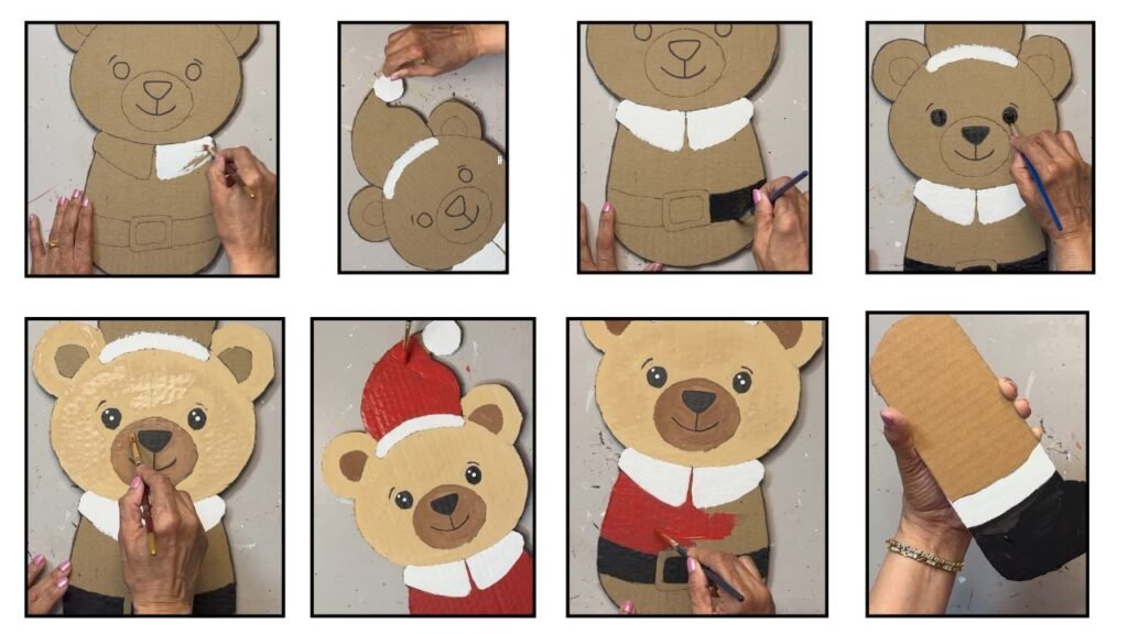 5. Next I painted all the parts making teddy look like Christmas Teddy Bear.