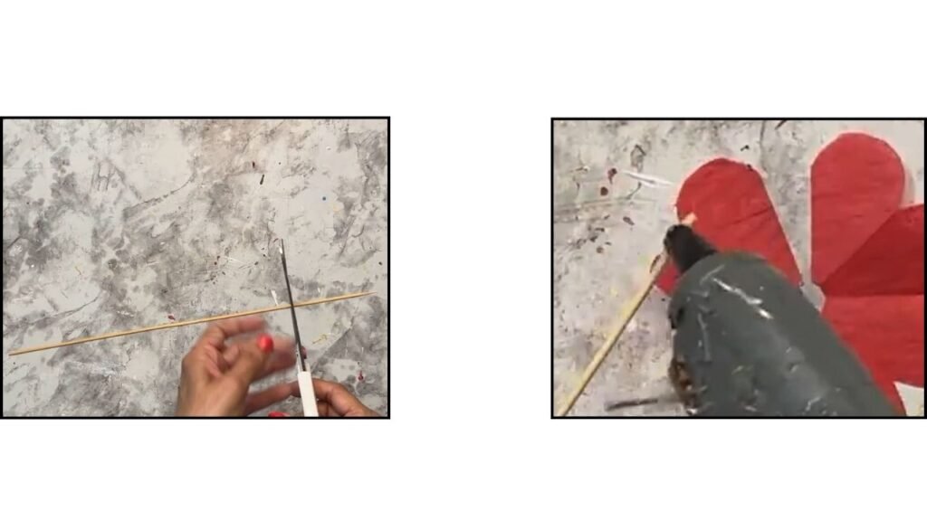 7. next I got a bamboo skewer. I cut the pointed tip on it. Then applied glue on one end of the skewer.