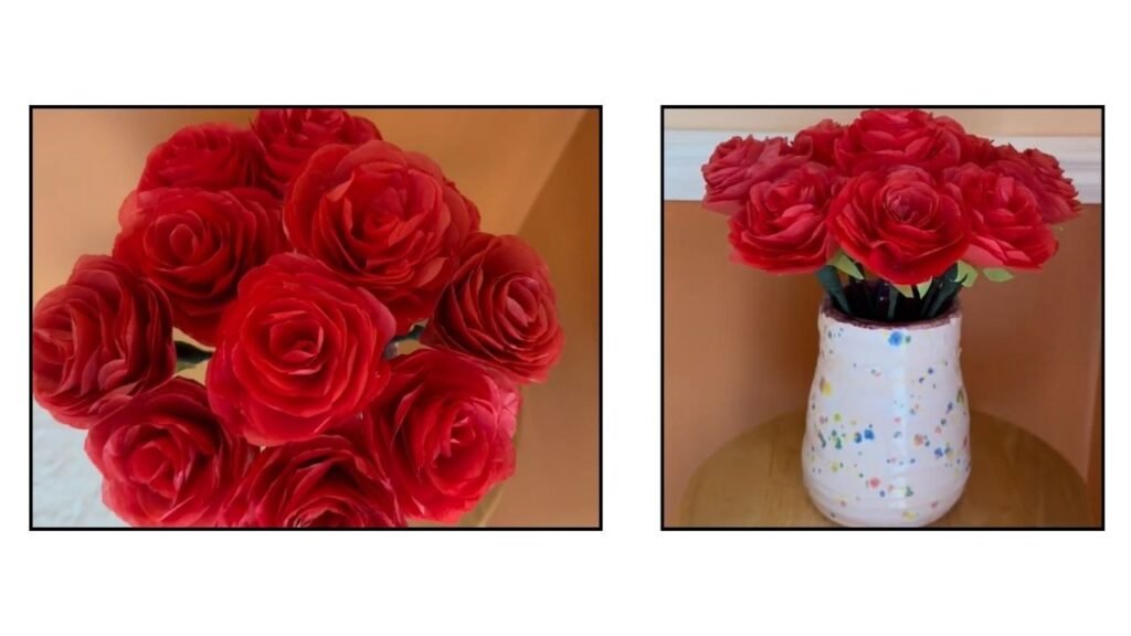 Just as I had imagined, the roses turned out beautiful and surprisingly realistic. The best part? I was able to make twenty roses for just one dollar, proving that you don’t need expensive materials to create something truly stunning.