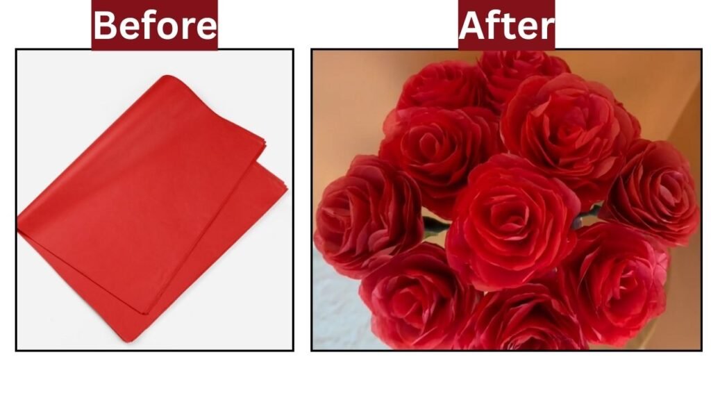 At the time, I had a strong urge to make paper flowers. Since tissue paper is one of the most affordable materials, I decided to experiment with it. I began watching rose-making tutorials, most of which used bond or printer paper. One video, in particular, demonstrated a rolling method to make roses using bond paper.